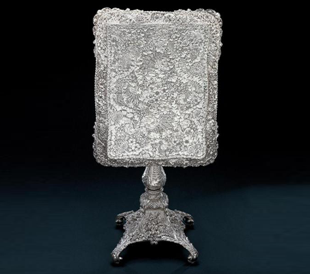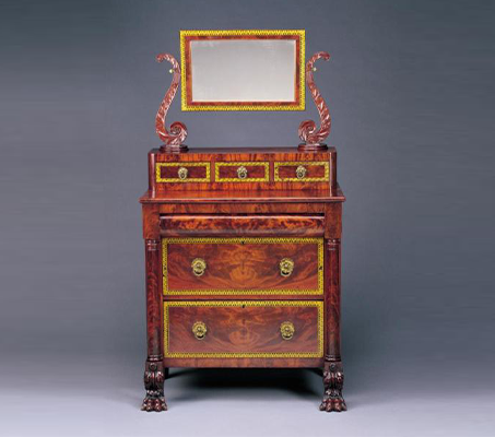 The Museum of Art’s world-renowned 19th-century decorative arts collection is among the finest in the country. It has its roots in the works purchased by the Institute founders and was rapidly enhanced beginning in the 1950s. Today it includes an impressive documented American furniture collection with works by Anthony Quervelle, John Henry Belter, Alexander Roux, Leon Marcotte, Kimbel and Cabus, Herter Brothers, George Schastey, Kilian Brothers, and Charles Baudouine, among others. Equally impressive are the glass, silver, and mixed metal holdings that include works by Tiffany & Co., Louis C. Tiffany, Gorham Manufacturing, Samuel Kirk, George W. Shiebler and Co., Bradley and Hubbard Mfg., Charles Parker, and Mount Washington Glass Co.